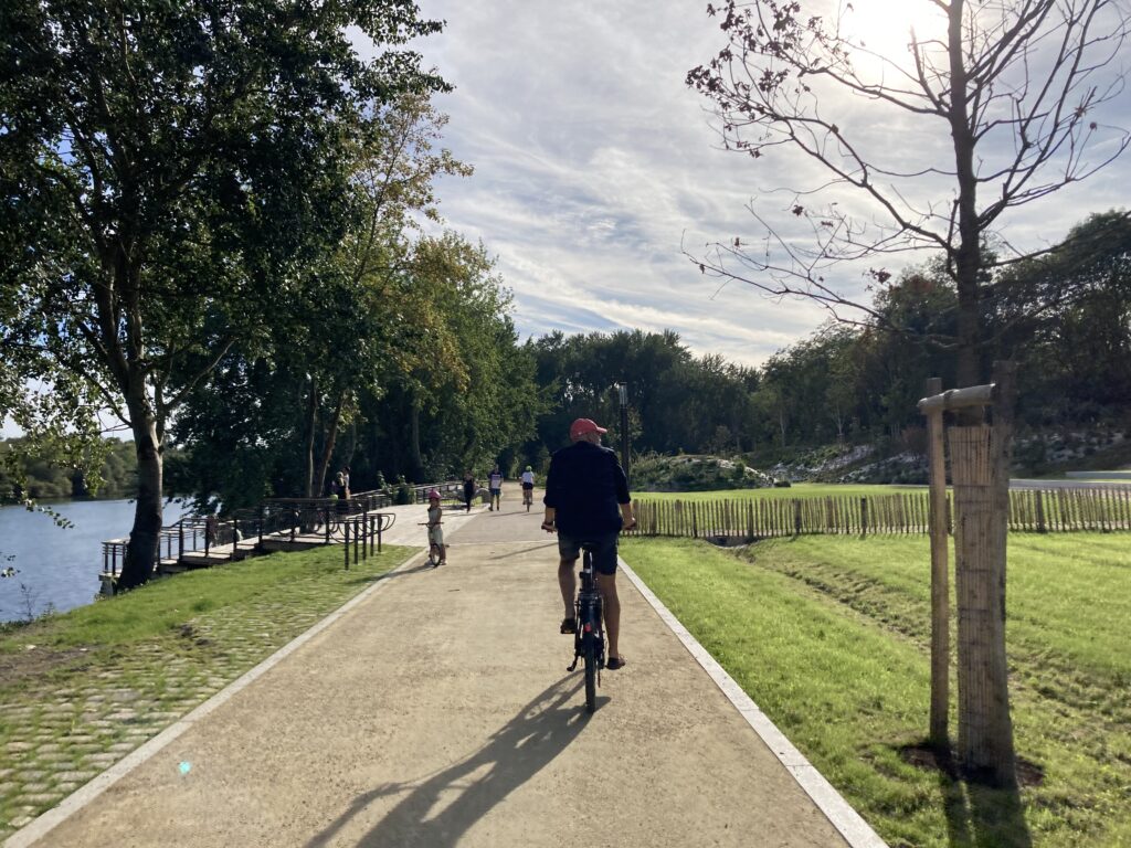 À Bezons, l’Agglo a réalisé plus de deux kilomètres de piste partagée piétons-cyclistes et d’aménagements paysagers, dans le cadre du Plan Vélo 2019-2026. La voie verte est également inscrite aux Schémas Directeurs Véloroutes Voies Vertes (SDVVV) des départements des Yvelines et du Val d’Oise.