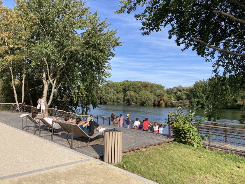 Ces larges pontons de bois sécurisés aménagés tout le long de la Voie verte vous offrent 3 points de vue différents sur la Seine, ses berges et le Parc Départemental de la Boucle de Montesson. Comparez les panoramas, regardez passer les péniches, profitez des transats mis à disposition pour vous détendre.